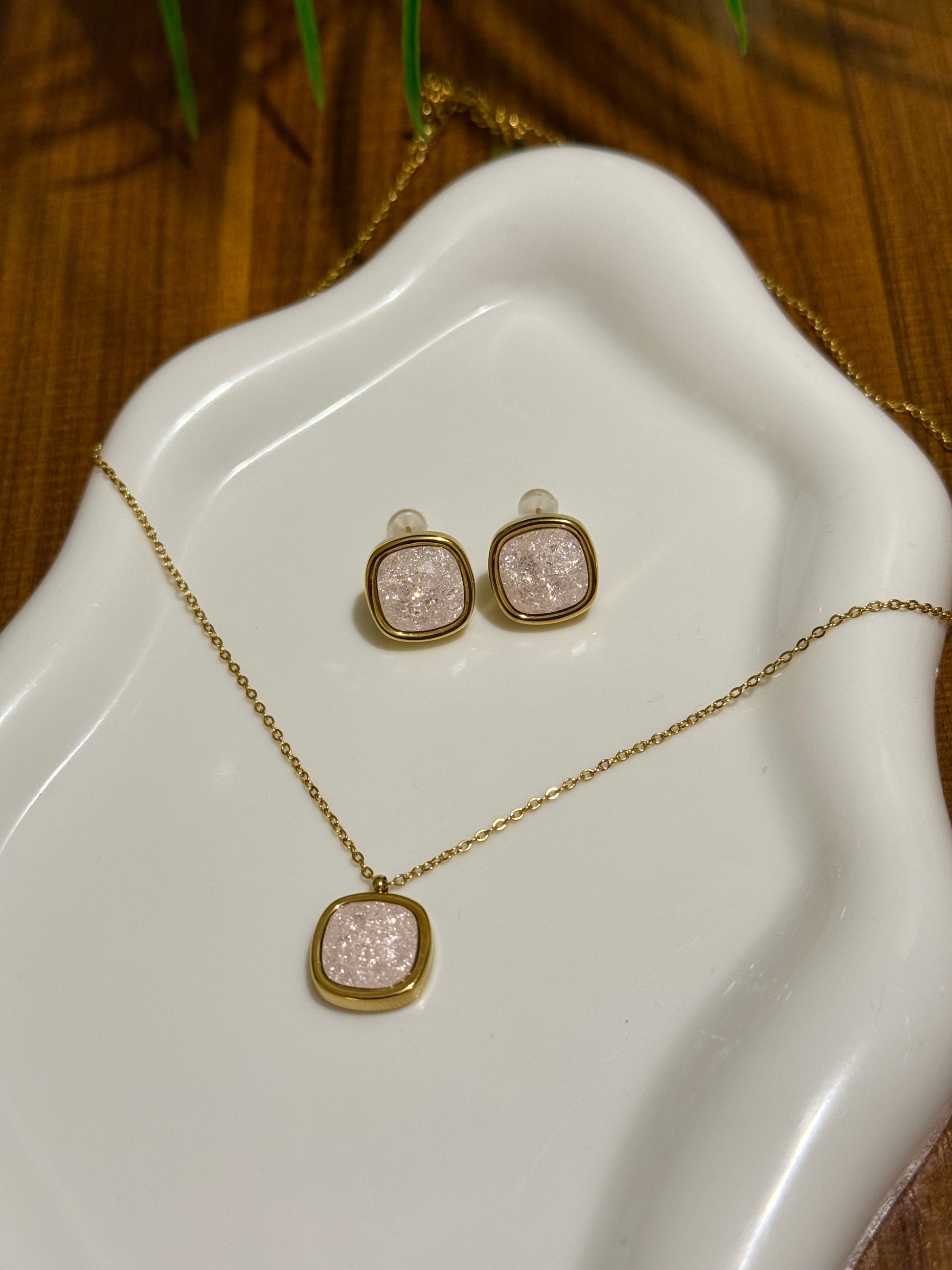Collier avec boucles d’oreilles en acier inoxydable très tendance qualité supérieure résistent à l'eau de tous les jours garantie